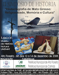 O II Simpósio de História já é uma realidade, através de muita garra e perseverança, dos acadêmicos de Historia do Curso de Expansão Unic, juntamente com o professor Célio Marcos Pedraça que muito tem se dedicado na realização do evento. O trabalho já esta encaminhado e tem tudo para ser perfeito, e muito importante esta sendo o apoio oferecido pelos nossos colaboradores: Museu de História natural da Unemat, as prefeituras Municipais de Alta Floresta e Carlinda e a Universidade de Cuiabá UNIC. Dias 12 a 14 de novembro II Simpósio de História: Historiografia de Mato Grosso “Religiosidade Memória e Cultura” Participe você também prestigie este evento.